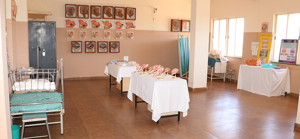 The laboratory is designed for students to appreciate the concepts and principles of midwifery and obstetrical nursing. It helps students to acquire knowledge and skills in rendering nursing service to normal and height risk pregnant women to antenatal, natal and postnatal periods in hospital and community settings. It also helps to develop skills in managing normal and high risk neonates and participate in family welfare programmes. This laboratory provide first hand experience in assessment of antenatal case, intranatal case, post natal case, neonatal assessment and demonstration of nursing care and handling problems accordingly.