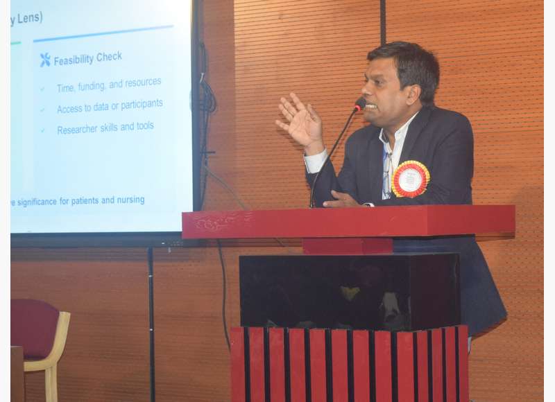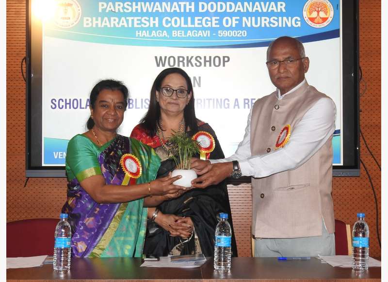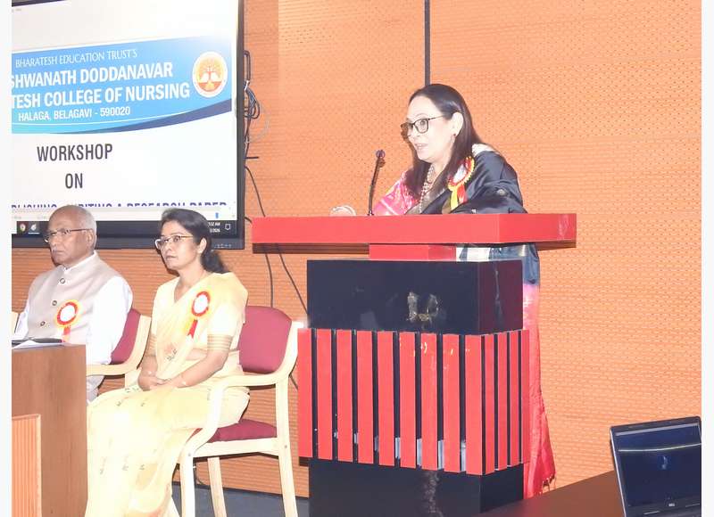 Dr. Savitri Dodannavar, Consultant Obstetrician and Gynecologist, Director of Deccan Medical Centre, and Governing Council Chairperson, P. D. Bharatesh College of Nursing, graced the programme and motivated the participants to pursue quality research and scholarly publications in healthcare sciences.